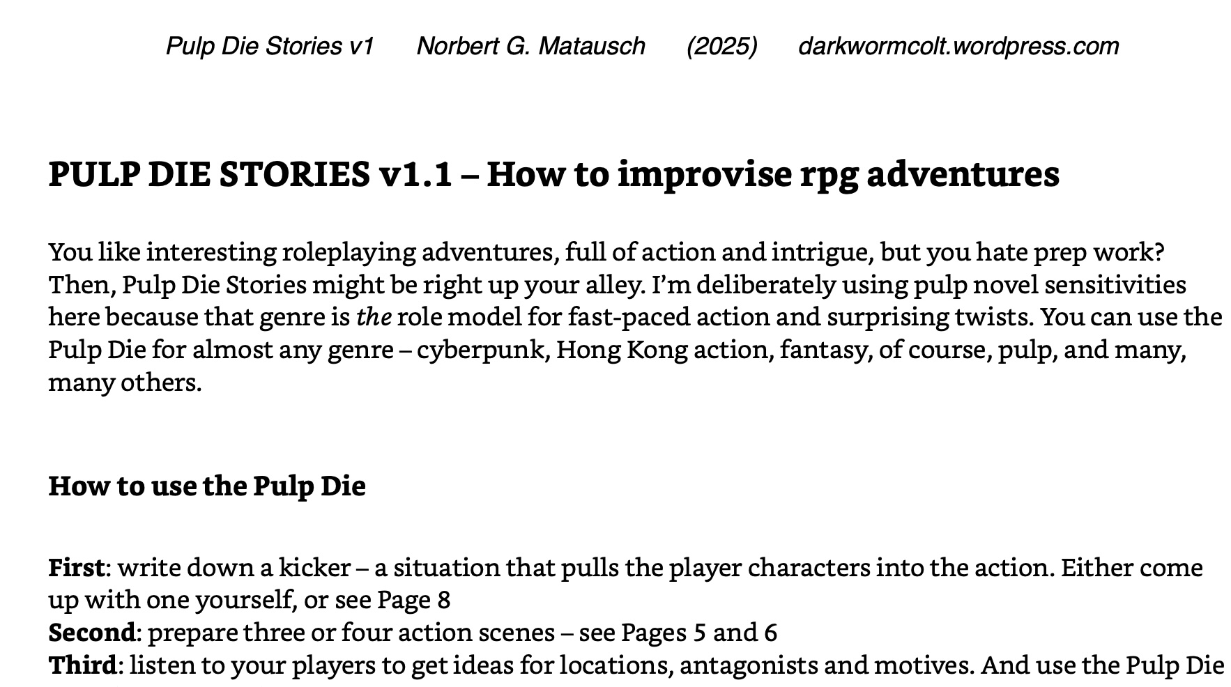 Do you like interesting roleplaying adventures, full of action and intrigue, but you hate prep work? Then, Pulp Die Stories might be right up your alley. I’m deliberately using pulp novel sensitivities here because that genre is the role model for fast-paced action and surprising twists.